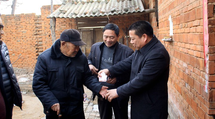 在段村,赵万钦同志除了慰问贫困户以外,还查看了该村的具体情况,得知村边有水库及一些荒地没有充分利用的情况下,他鼓励村干部多学习种植果树的技术,早日带领大家脱贫致富。来到特困户张德福家中,张延尚详细询问他的身体和生活状况,询问生活上有哪些困难。看到老人生活非常困难,张延尚同志掏出了自己的200元硬塞到老人手里面。